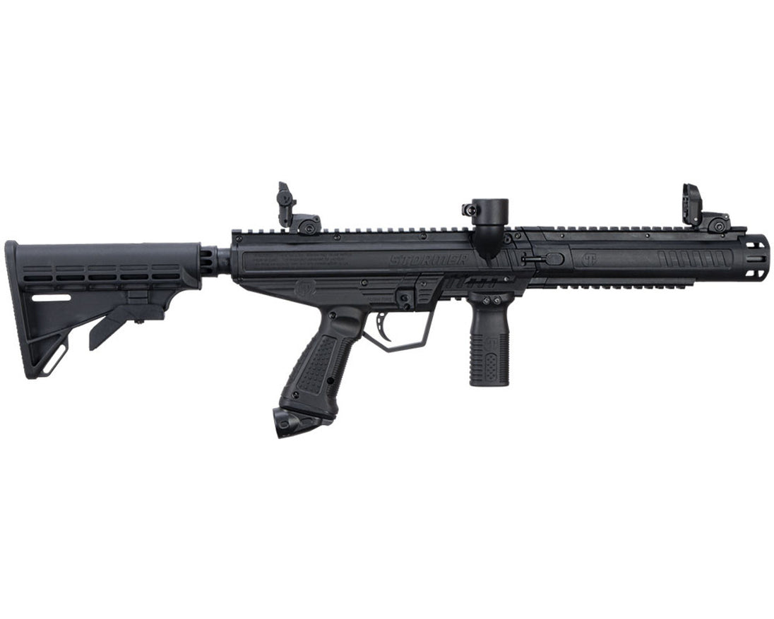 The new Tippmann Stormer is a completely modular .68 caliber marker for all levels of play. The Stormer Series is available in 3 models allowing full customization. The Stormer Basic features our reliable in-line bolt system with a high-impact composite body. The Stormer Tactical adds Tactical Front Shroud, Front / Rear Flip Up Sights and a 6 Position Collapsible Stock that completes the military look. The Stormer Elite allows you to switch between loader and mag fed configurations offering several different looks to switch between.